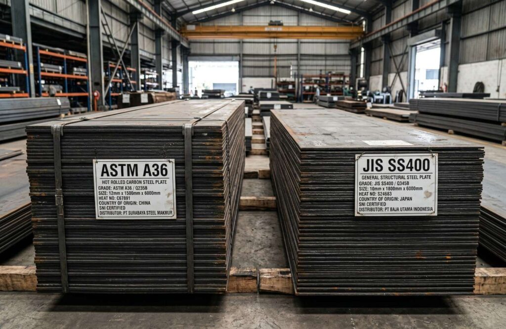 Beda Grade Baja SS400 vs ASTM A36 pada Plat Hitam