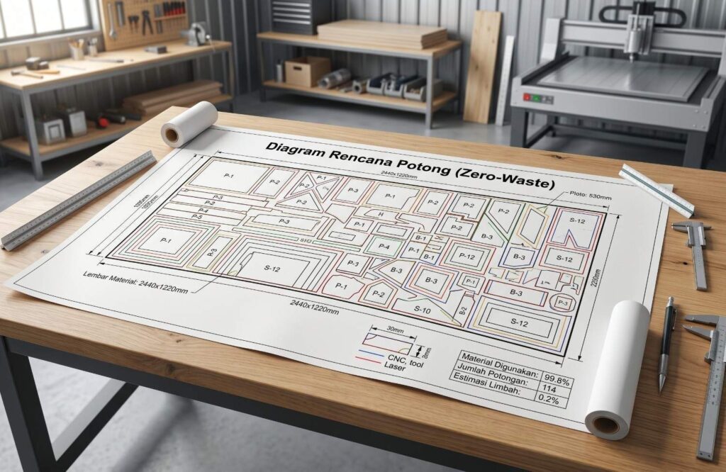 Pemborong sering kehilangan margin hingga 15% pada item rangka plafon akibat penumpukan waste (potongan tidak terpakai). Failure mode (kegagalan) ini terjadi karena aplikator lapangan memotong batang utuh 6 meter secara sporadis tanpa membuat cutting plan (rencana potong).