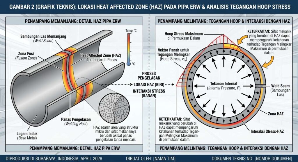 Insinyur perpipaan memperhitungkan faktor efisiensi sambungan (E) saat menghitung ketebalan dinding minimum. Untuk pipa seamless, E = 1.0 (efisiensi 100%). Untuk pipa ERW, nilai E berkisar antara 0.85. Penurunan toleransi sebesar 15% ini mencerminkan probabilitas kegagalan pada HAZ.