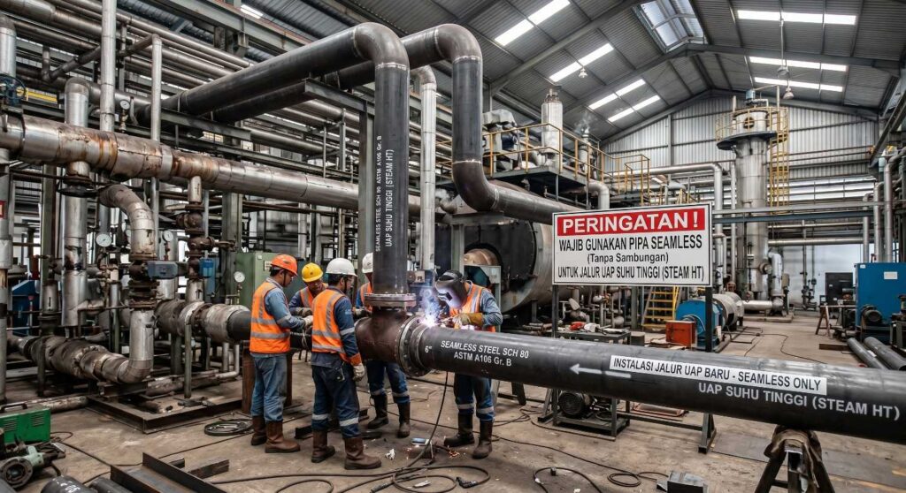 A: ASTM A53 dapat mencakup spesifikasi pipa seamless maupun pipa pipa welded (ERW), tergantung tipenya (Type S untuk Seamless, Type E untuk ERW). Namun, untuk suhu dan tekanan tinggi, standar yang di wajibkan adalah ASTM A106 yang secara eksklusif mensyaratkan pipa seamless.